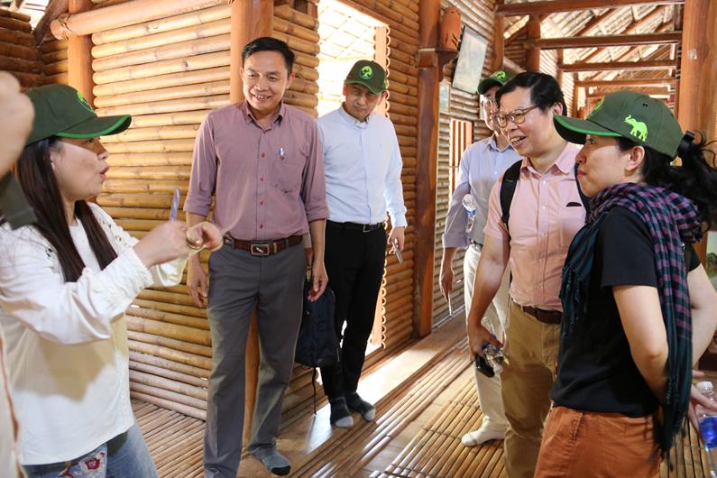 Đoàn công tác của Ngân hàng ADB tham quan Nhà dài truyền thống dân tộc Chơ Ro ở xã Phú Lý, huyện Vĩnh Cửu