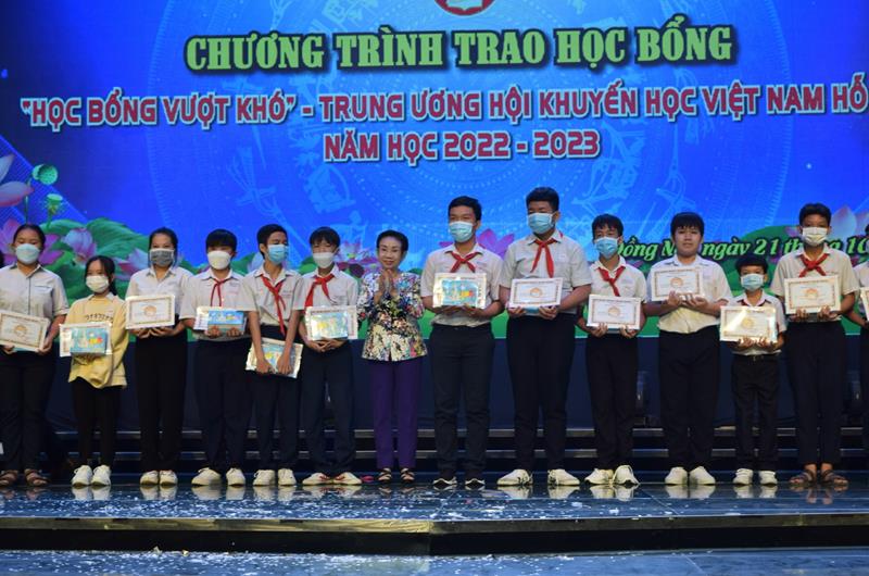Theo đó, có 246 học sinh, sinh viên khuyết tật được trao học bổng với tổng số tiền 1,17 tỷ đồng. Trong đó học sinh THCS được trao 4 triệu đồng/suất, học sinh THPT và học nghề được trao 5 triệu đồng/suất, sinh viên đại học được 10 triệu đồng/suất. Bên cạnh đó, Có 50 học sinh nghèo vượt khó được Trung ương HKH tặng học bổng với số tiền 100 triệu đồng. Cũng nhân dịp này, HKH tỉnh khen thưởng cho 32 em học sinh, sinh viên khuyết tật đạt thành tích giỏi, xuất sắc trong năm học 2021-2022 với tổng số tiền 16 triệu đồng.