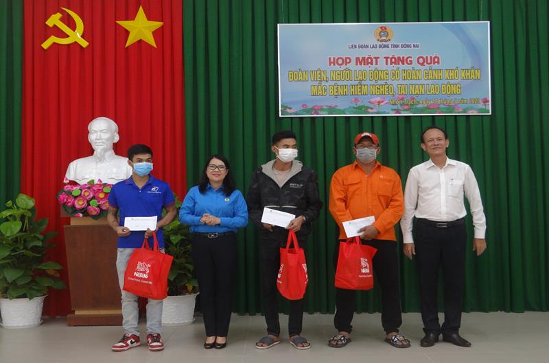 (CTT-Đồng Nai) - Sáng ngày 19 – 5, Liên đoàn Lao động tỉnh đã phối hợp với Sở Lao động, Thương binh xã hội tỉnh trao tặng 39 phần quà cho đoàn viên, công nhân bị tai nạn lao động, mắc bệnh hiểm nghèo có hoàn cảnh khó khăn trên địa bàn H.Nhơn Trạch.