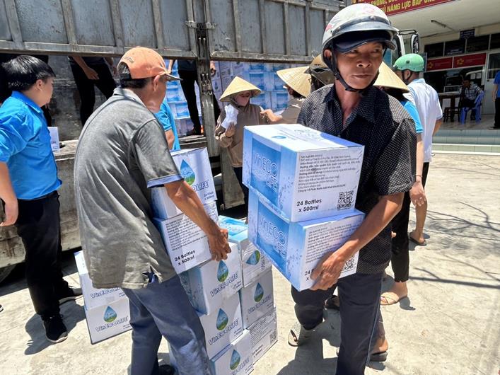Theo đó, Thành đoàn, Hội Liên hiệp thanh niên thành phố đã vận động trao tặng 530 thùng nước suối (loại 500ml), 80 bình nước (loại 30 lít) cho người dân tại huyện Bình Đại (tỉnh Bến Tre). Đồng thời, trao 6 phần quà bằng tiền mặt (500 ngàn đồng/phần) cho hộ dân có hoàn cảnh khó khăn.