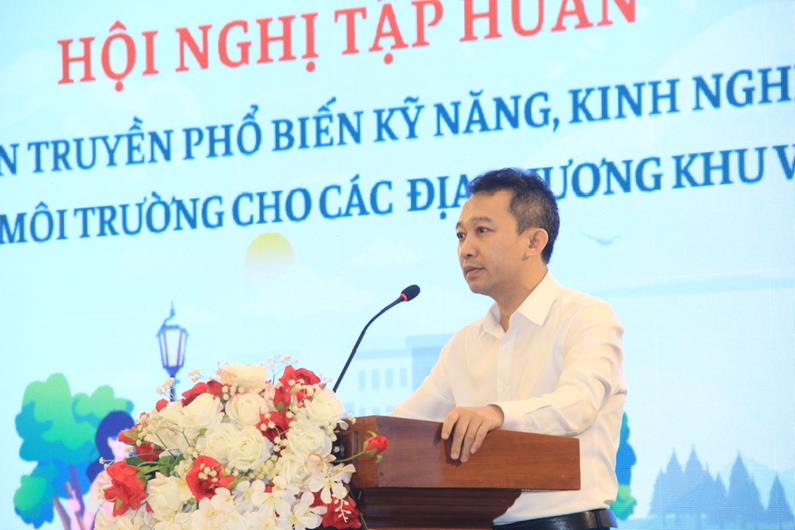 Ông Cao Minh Tuấn, Phó Giám đốc Trung tâm Truyền thông Tài nguyên và Môi trường trao đổi tại hội nghị tập huấn