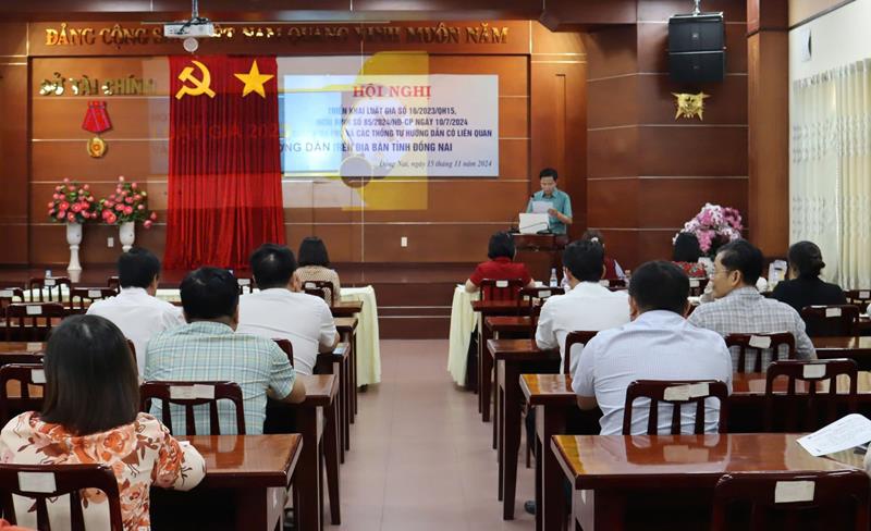 (CTT-Đồng Nai) - Ngày 15-11, Sở Tài chính tổ chức hội nghị triển khai Luật Giá số 16/2023/QH15 (Luật Giá năm 2023), Nghị định số 85/2024/NĐ-CP ngày 10-7-2024 của Chính phủ và các thông tư hướng dẫn có liên quan trên địa bàn tỉnh.