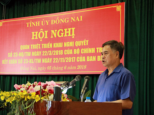 Hội nghị đã được nghe PGS.TS. Nguyễn Viết Thông, Tổng thư ký Hội đồng lý luận Trung ương triển khai những nội dung cơ bản của Nghị quyết số 23-NQ/TW ngày 22-3-2018 của Bộ Chính trị. Trong đó nêu bật các nội dung về tình hình và nguyên nhân; quan điểm chỉ đạo và mục tiêu; định hướng xây dựng chính sách phát triển công nghiệp quốc gia. Theo Nghị quyết, đến năm 2030, Việt Nam hoàn thành mục tiêu công nghiệp hóa, hiện đại hóa, cơ bản trở thành nước công nghiệp theo hướng hiện đại; thuộc nhóm 3 nước dẫn đầu khu vực ASEAN về công nghiệp, trong đó một số ngành công nghiệp có sức cạnh tranh quốc tế và tham gia sâu vào chuỗi giá trị toàn cầu. Tầm nhìn đến năm 2045, Việt Nam trở thành nước công nghiệp phát triển hiện đại. Về mục tiêu cụ thể đến năm 2030: Tỷ trọng công nghiệp trong GDP đạt trên 40%; tỷ trọng công nghiệp chế biến, chế tạo trong GDP đạt khoảng 30%, trong đó công nghiệp chế tạo đạt trên 20%. Tỷ trọng giá trị sản phẩm công nghiệp công nghệ cao trong các ngành chế biến, chế tạo đạt tối thiểu 45%. Tốc độ tăng trưởng giá trị gia tăng công nghiệp đạt bình quân trên 8,5%/năm, trong đó công nghiệp chế biến, chế tạo đạt bình quân trên 10%/năm. Tốc độ tăng năng suất lao động công nghiệp đạt bình quân 7,5%/năm. Chỉ số hiệu suất cạnh tranh công nghiệp (CIP) nằm trong nhóm 3 nước dẫn đầu ASEAN. Tỷ lệ lao động trong lĩnh vực công nghiệp và dịch vụ đạt trên 70%. Xây dựng được một số cụm liên kết ngành công nghiệp, doanh nghiệp công nghiệp trong nước có quy mô lớn, đa quốc gia, có năng lực cạnh tranh quốc tế.