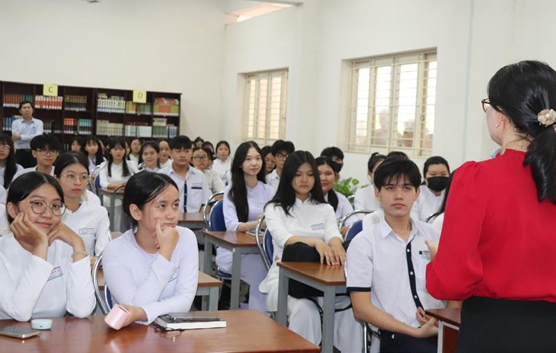(CTT- Đồng Nai) - Sáng 7-10, Ủy viên Ban Thường vụ Tỉnh ủy, Chủ nhiệm Ủy ban Kiểm tra Tỉnh ủy, Chủ tịch Hội hữu nghị Việt Nam – Hàn Quốc tỉnh Huỳnh Thanh Bình đã đến trao đổi với học sinh Trường Trung học phổ thông (THPT) Chu Văn An về việc học tiếng Hàn trong nhà trường.