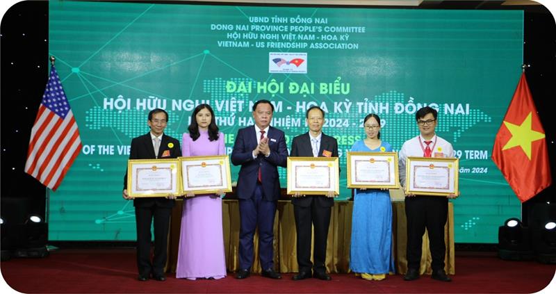 Ủy viên Ban TVTU, Quyền Chủ tịch UBND tỉnh Võ Tấn Đức khen thưởng cá nhân, tập thể Đồng Nai có đóng góp tích cực cho công tác Hội trong nhiệm kỳ vừa qua