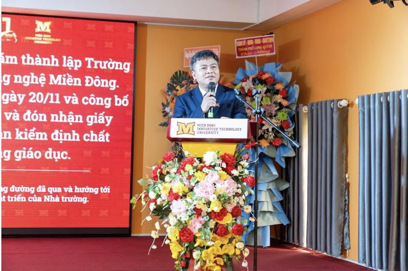 (CTT- Đồng Nai) - Sáng 20-11, Trường Đại học Công nghệ Miền Đông (MIT University Vietnam) long trọng tổ chức Lễ Kỷ niệm 11 năm thành lập trường (11-11-2013 – 11-11-2024) và kỷ niệm 42 năm Ngày Nhà giáo Việt Nam, đồng thời đón nhận quyết định công nhận đạt chuẩn kiểm định chất lượng giáo dục.