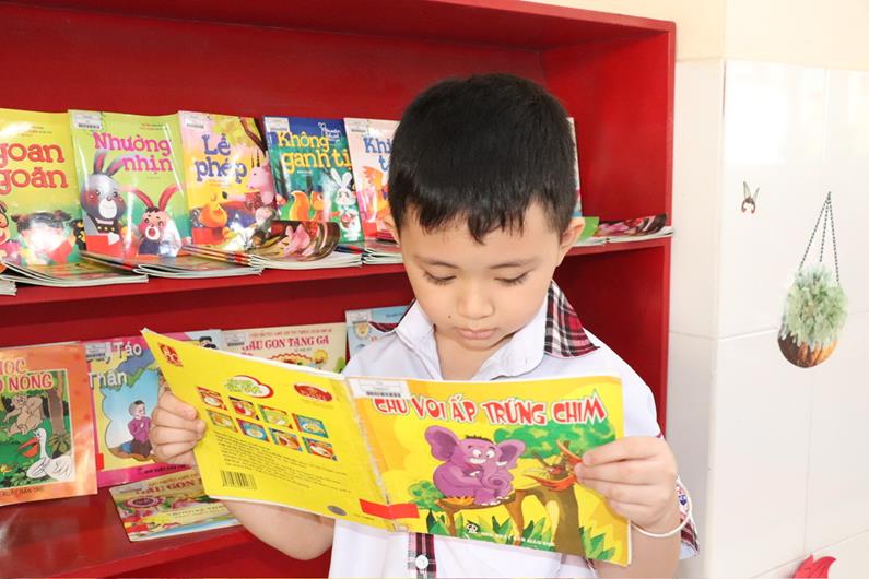 Học sinh Trường Tiểu học Nguyễn Huệ (thành phố Biên Hòa) trong giờ đọc ở thư viện