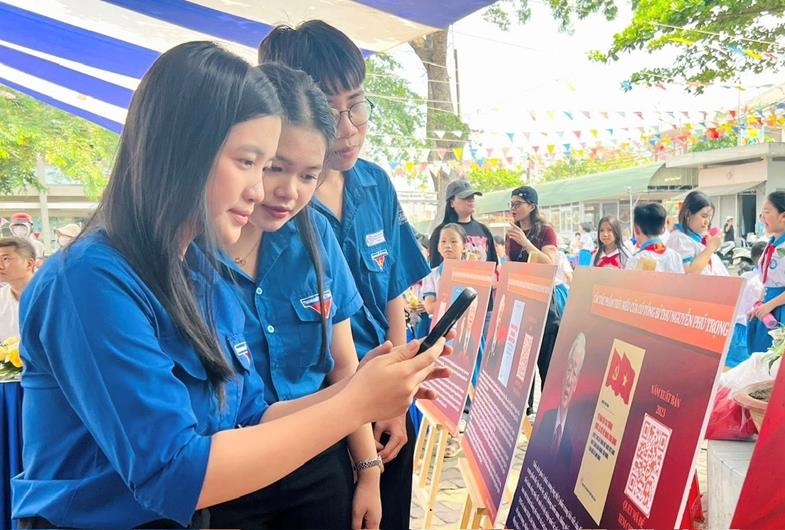 Đoàn viên, thanh niên quét mã QR-Code tìm hiểu nội dung các cuốn sách của Cố Tổng Bí thư Nguyễn Phú Trọng