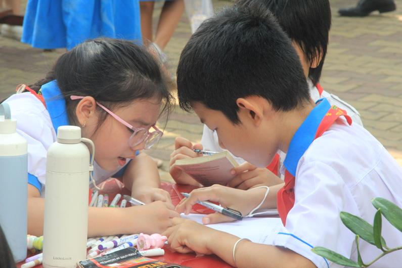 Các em thiếu nhi của thành phố Biên Hòa tham gia thiết kế bìa sách