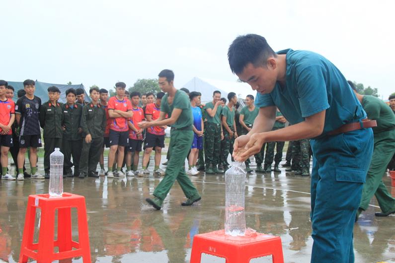 Cán bộ, chiến sĩ các đơn vị lực lượng vũ trang tham gia hội thao thi đấu môn Dẫn nước về nguồn