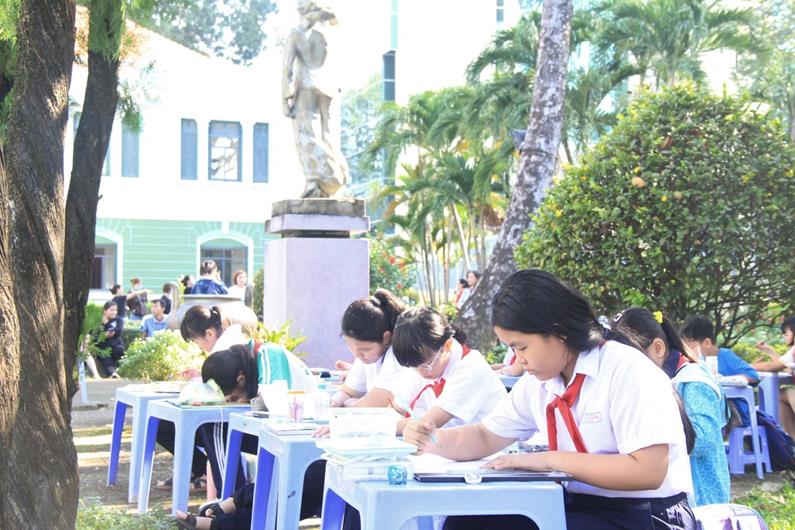 Các em thiếu nhi tham gia hội thi vẽ tranh về mối quan hệ hữu nghị Việt Nam – Nhật Bản
