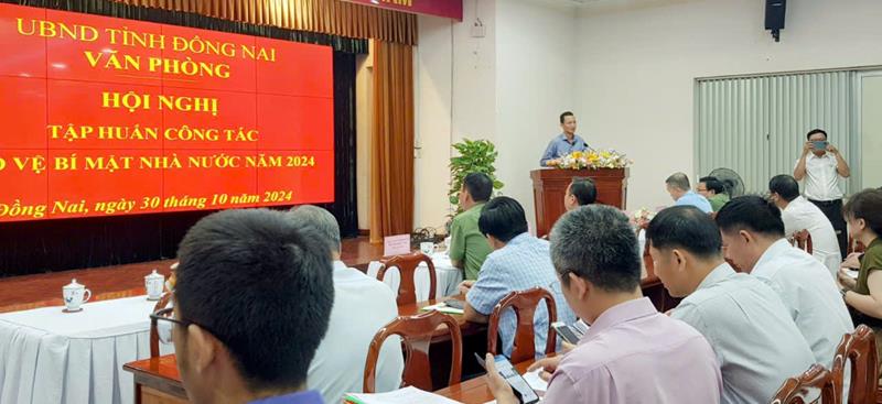 (CTT-Đồng Nai) - Trong thời gian qua, trên cả nước đã xảy ra nhiều vụ lộ, mất thông tin, tài liệu mang nội dung bí mật Nhà nước (BMNN). Nhằm nâng cao nhận thức, tinh thần, trách nhiệm về công tác bảo vệ bí mật nhà nước, ngày 30-10, Văn phòng UBND tỉnh đã tổ chức Hội nghị tập huấn công tác bảo vệ BMNN cho hơn 200 cán bộ, công chức, viên chức, người lao động đang công tác tại Trụ sở khối nhà nước tỉnh.