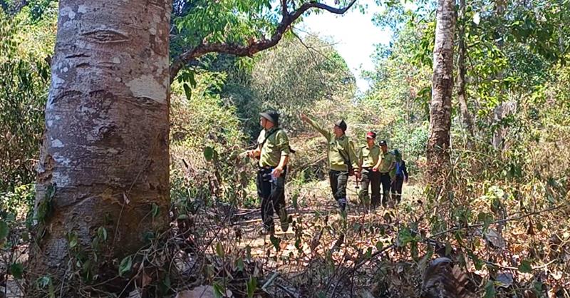 Khi gần đến khu vực phân bố nhiều cây ươi, đoàn đã lần lượt phát hiện các dấu vết của các đối tượng xâm nhập rừng trái phép để lại. Đoàn ra tín hiệu phân công cho một kiểm lâm viên tiên phong đi trước để nắm bắt tình hình. Những người còn lại phân chia thành 2 nhóm để lần theo dấu vết. Tốc độ di chuyển tăng nhanh dần, các thành viên trong đoàn vừa phải băng qua nhiều khe suối sâu khô cạn nước với lổn nhổn đá, vừa trèo qua ngọn đồi dốc cao nên việc đi tuần tra rất vất vả.
