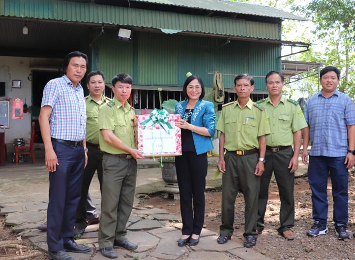 Phó Chủ tịch UBND tỉnh Nguyễn Thị Hoàng cùng đoàn công tác đến thăm, tặng quà cho nhân viên bảo vệ rừng tại Trạm Kiểm lâm Đồi Tròn (thuộc Hạt Kiểm lâm Vườn quốc gia Cát Tiên)