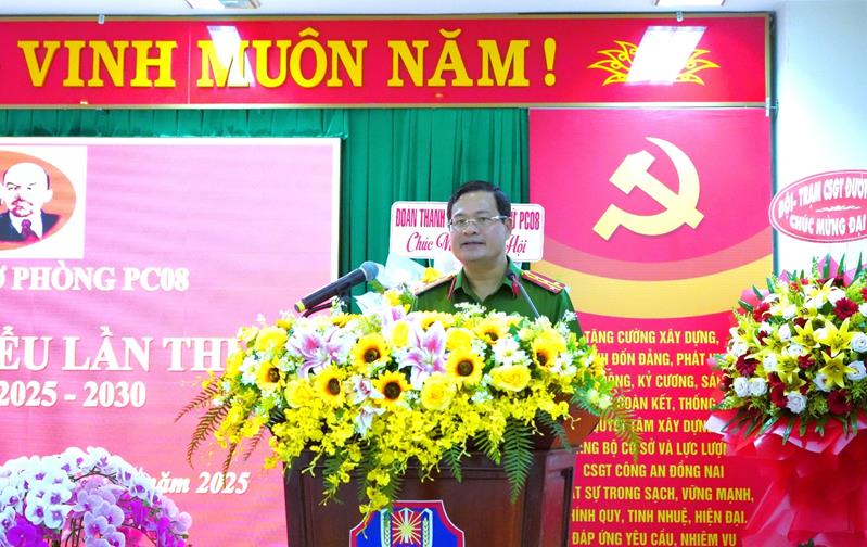 (CTT-Đồng Nai) - Chiều 20/6, Đảng bộ Phòng Cảnh sát giao thông Công an tỉnh Đồng Nai đã tổ chức Đại hội lần thứ XI, nhiệm kỳ 2025 - 2030. Dự và phát biểu chỉ đạo Đại hội có đồng chí Đại tá Trần Anh Sơn, Ủy viên Ban Thường vụ Đảng ủy, Phó Giám đốc Công an tỉnh.