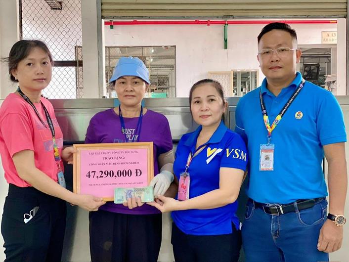 Công đoàn Công ty TNHH Pou Sung Việt Nam tặng tiền cho công nhân lao động bị bệnh hiểm nghèo