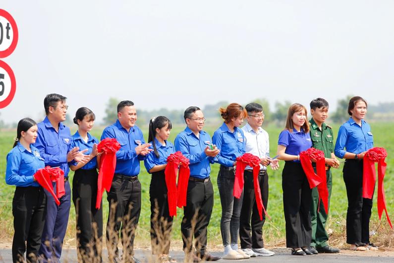 Đại diện Tỉnh đoàn, Hội Liên hiệp thanh niên tỉnh Đồng Nai và tỉnh Tây Ninh thực hiện nghi thức cắt băng khánh thành công trình thanh niên Thắp sáng đường biên