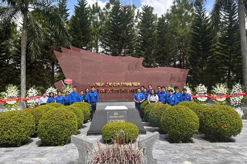Đoàn đại biểu dâng hương, chụp hình lưu niệm tại khu mộ anh hùng Lý Tự Trọng tại huyện Thạch Hà, tỉnh Hà Tĩnh