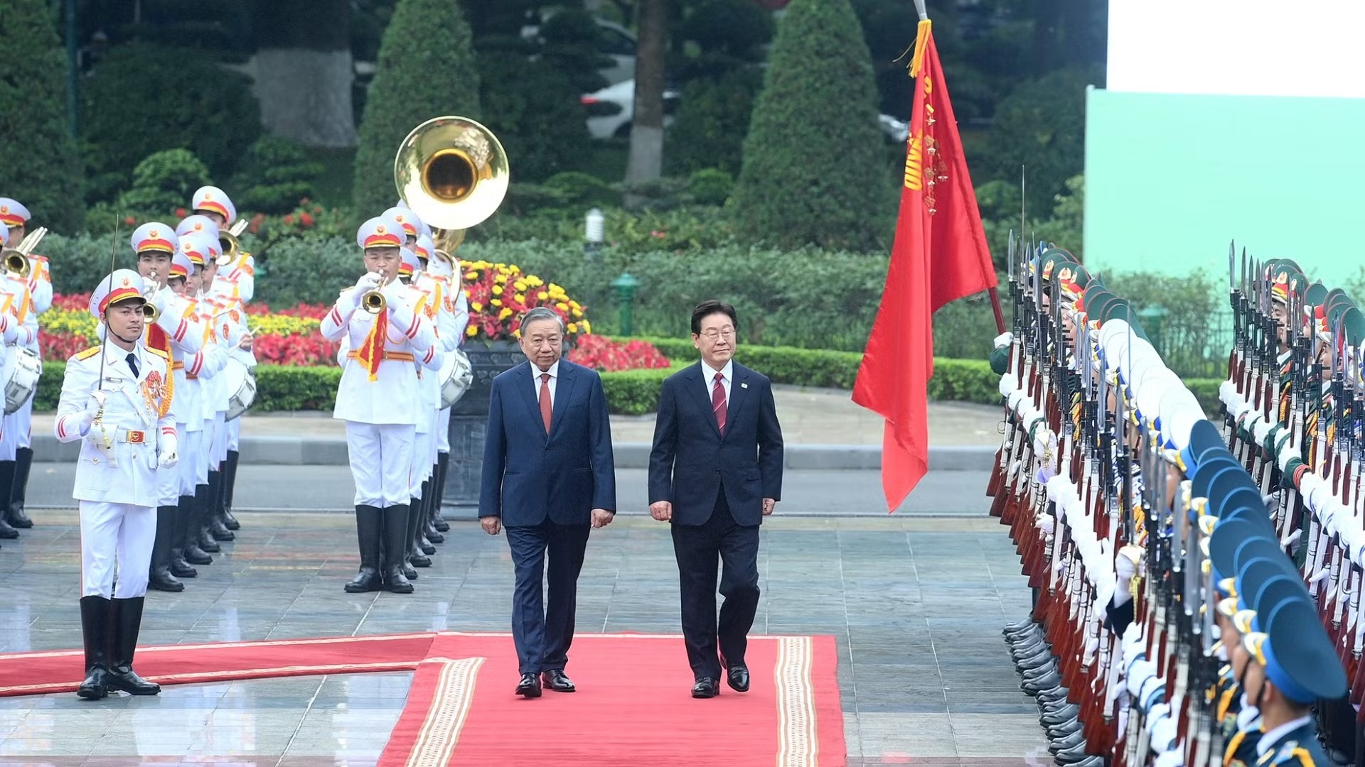 Tổng Bí thư, Chủ tịch nước Tô Lâm và Tổng thống Hàn Quốc Lee Jae Myung duyệt đội danh dự Quân đội nhân dân Việt Nam. (Ảnh: ĐĂNG KHOA)Đoàn xe chở Tổng thống Hàn Quốc tiến vào Phủ Chủ tịch.Tổng Bí thư, Chủ tịch nước Tô Lâm và Tổng thống Hàn Quốc Lee Jae Myung trên bục danh dự nghe quân nhạc cử Quốc thiều hai nước.Tổng Bí thư, Chủ tịch nước Tô Lâm và Tổng thống Hàn Quốc Lee Jae Myung cúi chào Quân kỳ quyết thắng.Tổng Bí thư, Chủ tịch nước Tô Lâm và Tổng thống Hàn Quốc Lee Jae Myung duyệt đội danh dự Quân đội nhân dân Việt Nam.Thiếu nhi Thủ đô chào đón Tổng thống Hàn Quốc Lee Jae Myung và Phu nhân thăm cấp Nhà nước tới Việt Nam.Thiếu nhi Thủ đô chào đón Tổng thống Hàn Quốc Lee Jae Myung và Phu nhân thăm cấp Nhà nước tới Việt Nam.Thiếu nhi Thủ đô chào đón Tổng thống Hàn Quốc Lee Jae Myung và Phu nhân thăm cấp Nhà nước tới Việt Nam.Tổng Bí thư, Chủ tịch nước Tô Lâm và Tổng thống Hàn Quốc Lee Jae Myung.Tổng Bí thư, Chủ tịch nước Tô Lâm và Phu nhân với Tổng thống Hàn Quốc Lee Jae Myung và Phu nhân.