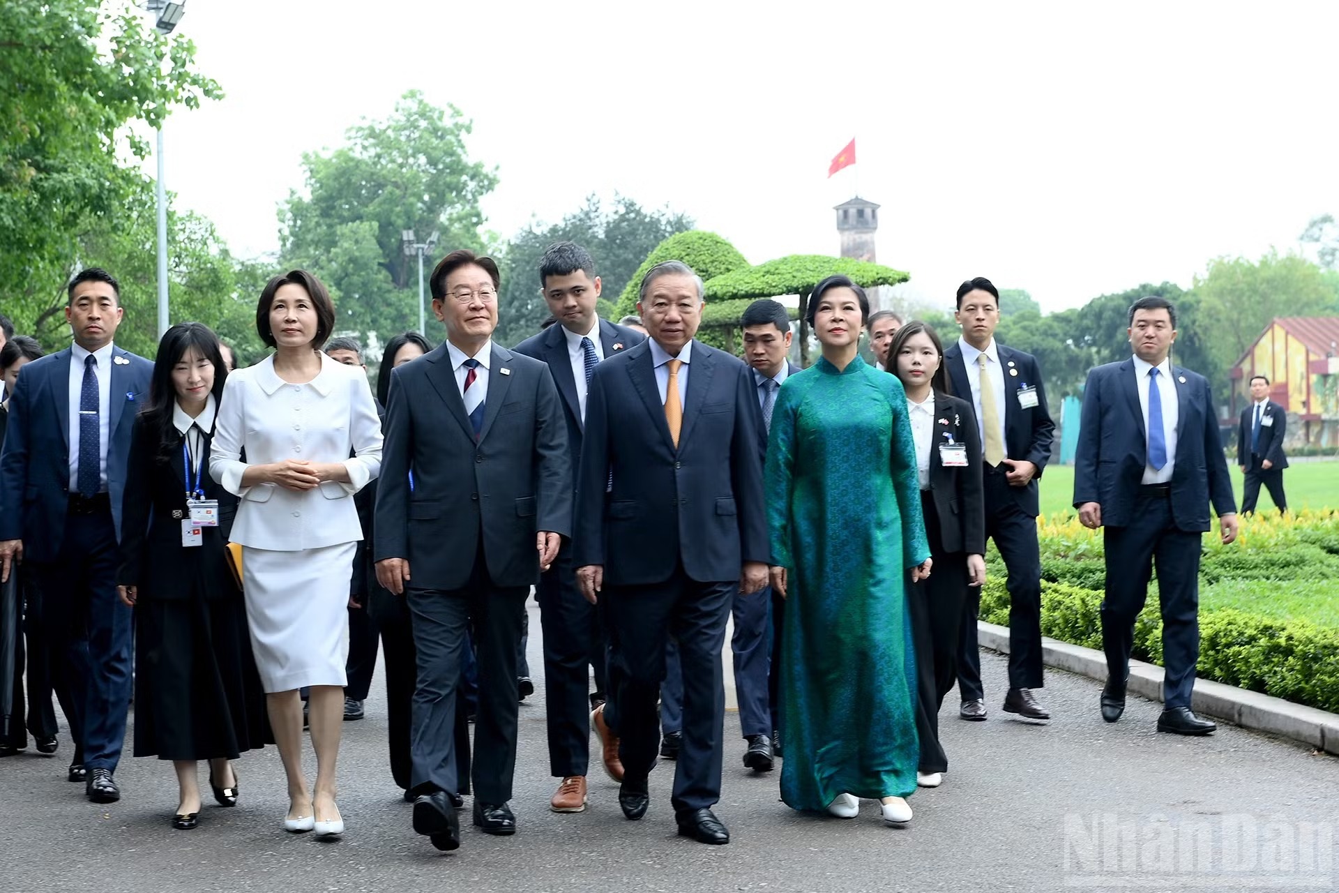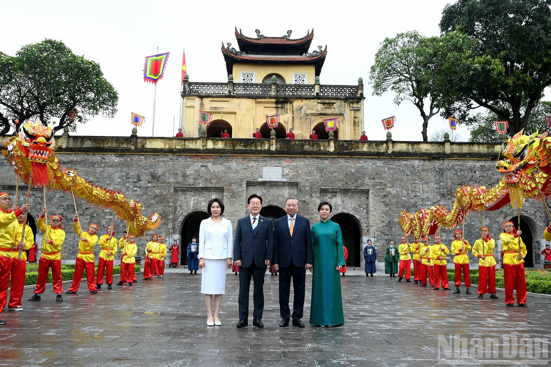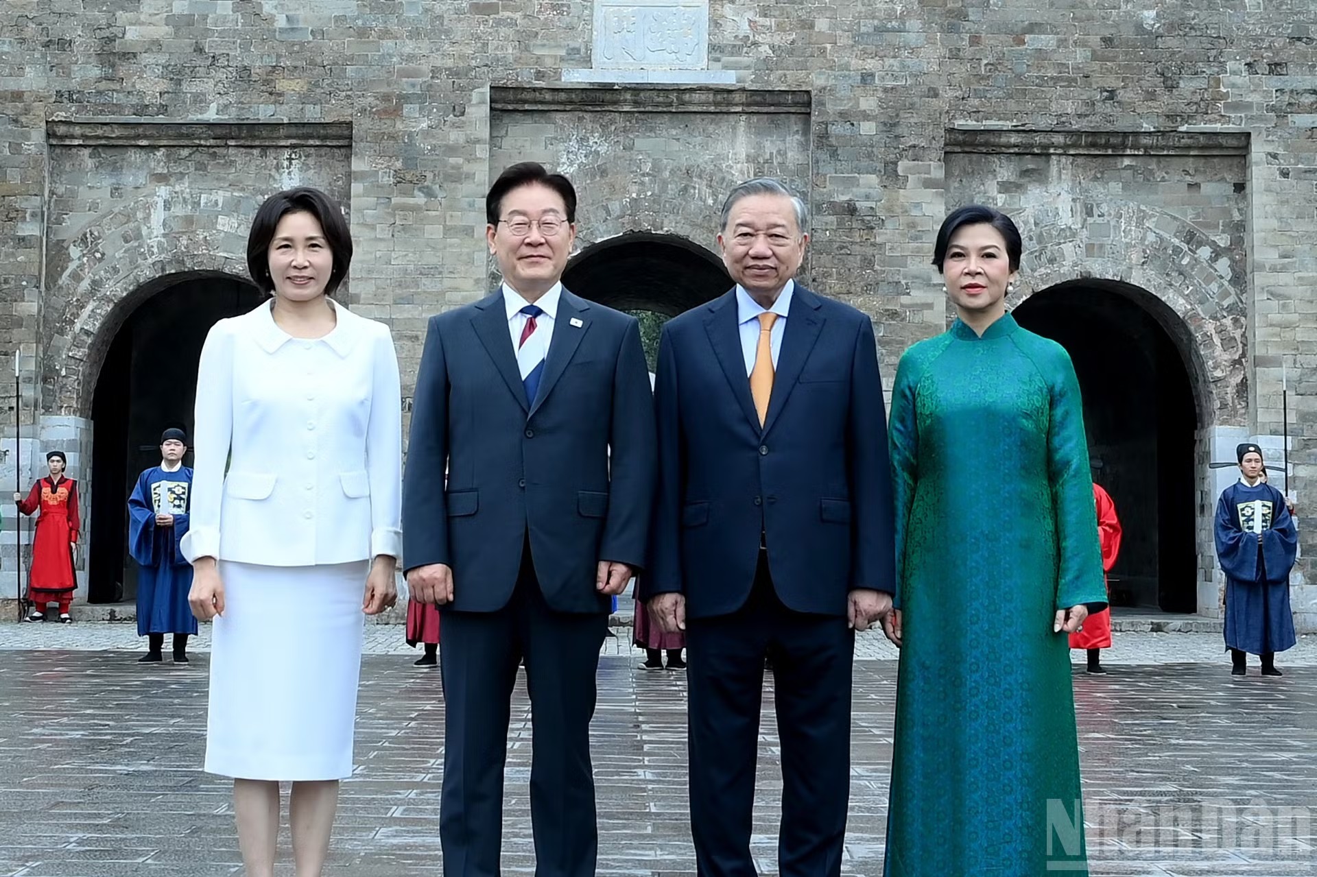 Sáng 24-4, tại Hoàng thành Thăng Long (Hà Nội), Tổng Bí thư, Chủ tịch nước Tô Lâm và Phu nhân Ngô Phương Ly chủ trì Chương trình hữu nghị đặc biệt chào mừng chuyến thăm cấp Nhà nước đến Việt Nam của Tổng thống Hàn Quốc Lee Jae Myung và Phu nhân Kim Hye Kyung.