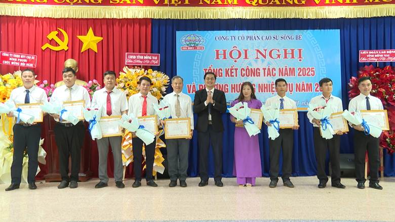 Tại hội nghị, Công ty cổ phần cao su Sông Bé đã khen thưởng cho nhiều tập thể, cá nhân đạt thành tích xuất sắc trong hoạt động sản xuất, kinh doanh trong năm 2025.