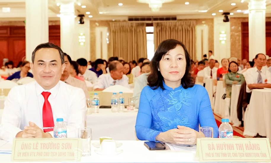Phó Bí thư Tỉnh ủy, Chủ tịch Ủy ban MTTQ Việt Nam tỉnh Đồng Nai Huỳnh Thị Hằng và Ủy viên Ban Thường vụ Tỉnh ủy, Phó Chủ tịch UBND tỉnh Đồng Nai Lê Trường Sơn tham dự đại hội. Ảnh: Văn Truyên