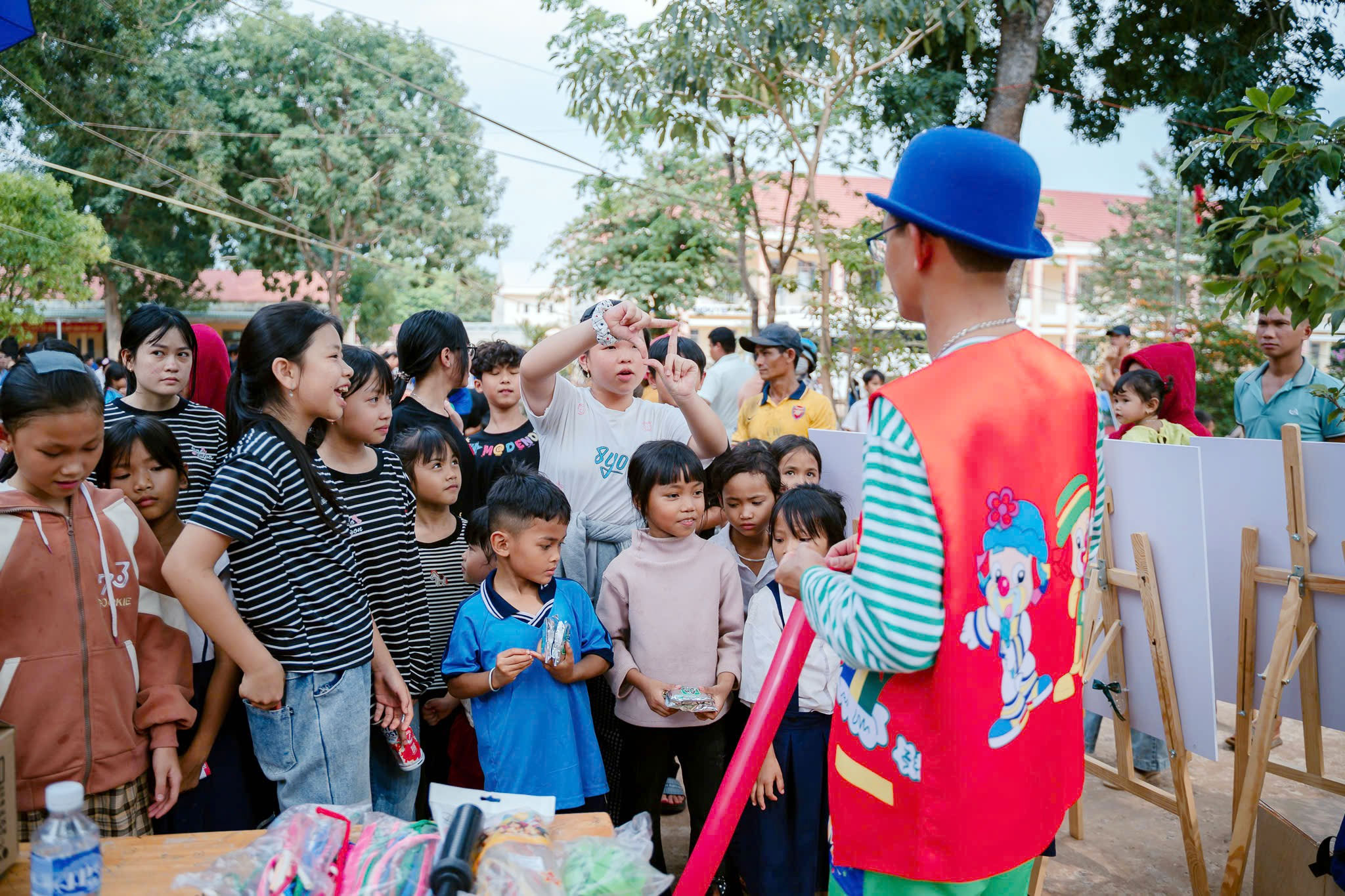 Chương trình còn có các mô hình “Gian hàng 0 đồng”, “Gian hàng đổi rác tái chế lấy quà”, “Gian hàng ẩm thực miễn phí” nhằm hỗ trợ trực tiếp cho người dân có hoàn cảnh khó khăn và nâng cao ý thức bảo vệ môi trường trong cộng đồng. Chương trình “Suất ăn cho em” đã trao tặng hơn 550 suất ăn, mang đến sự động viên, tiếp sức cho các em thiếu nhi trong học tập và cuộc sống. Bên cạnh đó, Ban Tổ chức đã trao tặng 400 phần quà cho các hộ gia đình khó khăn và thiếu nhi trên địa bàn, góp phần chia sẻ, hỗ trợ người dân vượt qua khó khăn. Hoạt động khám và tầm soát thị lực miễn phí cho 200 lượt người dân cũng được triển khai hiệu quả, thể hiện sự quan tâm toàn diện đến sức khỏe cộng đồng, đặc biệt tại các khu vực còn nhiều hạn chế về điều kiện tiếp cận dịch vụ y tế.