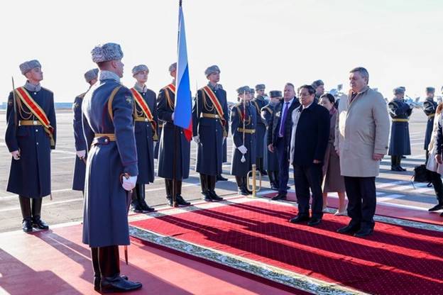 Lễ đón chính thức Thủ tướng Phạm Minh Chính thăm Liên bang Nga được tổ chức trang trọng tại sân bay quốc tế Vnukovo 2, do Thứ trưởng Bộ Ngoại giao Liên bang Nga Rudenko Andrey Yurevych chủ trì. Trong không khí trang nghiêm, khi Thủ tướng Phạm Minh Chính di chuyển trên thảm đỏ tới vị trí danh dự, Quân nhạc cử Quốc thiều Việt Nam và Quốc thiều Liên bang Nga. Sau đó, Thủ tướng Chính phủ Phạm Minh Chính duyệt đội danh dự và chứng kiến diễu binh…
