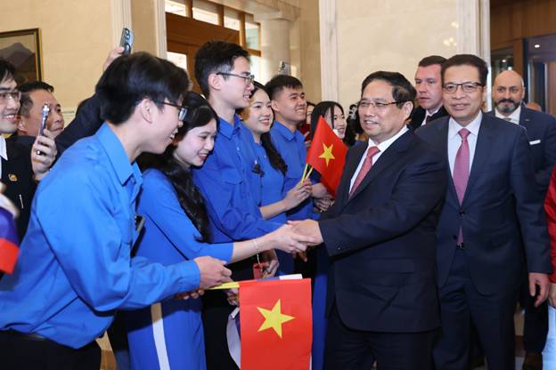 Thứ trưởng Bộ Ngoại giao Liên bang Nga Rudenko Andrey Yurevych; Đại sứ Liên bang Nga tại Việt Nam Gennady Stepanovich Bezdetko; Cục trưởng Cục Lễ tân, Bộ Ngoại giao Nga; Đại sứ Việt Nam tại Liên bang Nga Đặng Minh Khôi và cán bộ, nhân viên Đại sứ quán, cùng đại diện cộng đồng người Việt Nam tại Nga nhiệt liệt chào mừng Thủ tướng Phạm Minh Chính và đoàn Đại biểu cấp cao Việt Nam thăm Liên bang Nga.