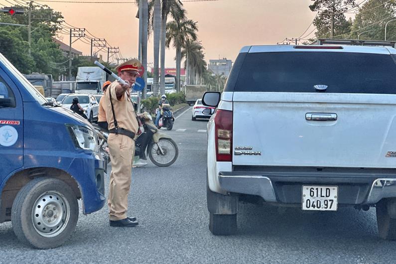 Lực lượng Cảnh sát giao thông điều tiết giao thông tại các tuyến đường đổ vào ngã tư Vũng Tàu.