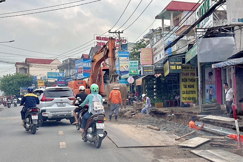 Đường Bùi Trọng Nghĩa (phường Trảng Dài, thành phố Biên Hòa) đang thi công hệ thống cống thoát nước.