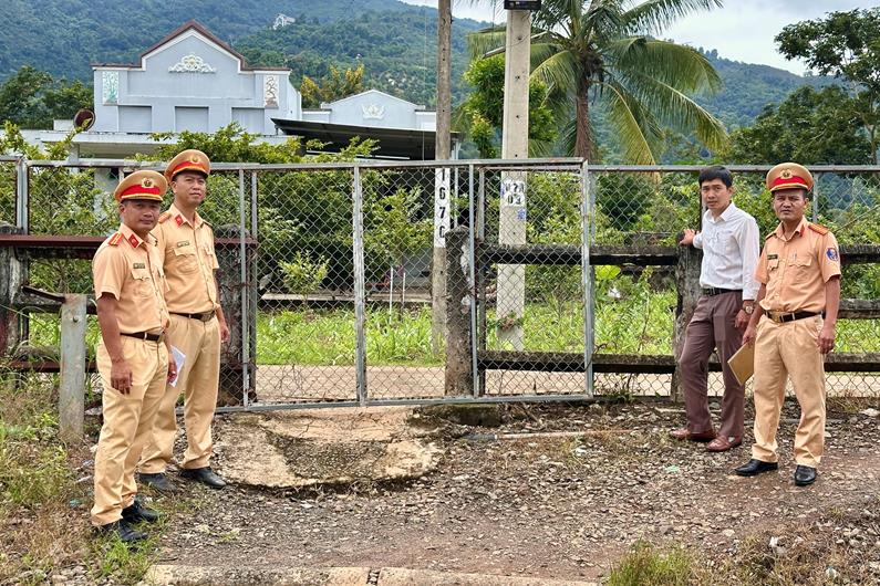 Lực lượng chức năng kiểm tra vị trí lối mở dân sinh ngang đường sắt tại Km 1629 + 300 (xã Xuân Trường, huyện Xuân Lộc) đã rào chắn.