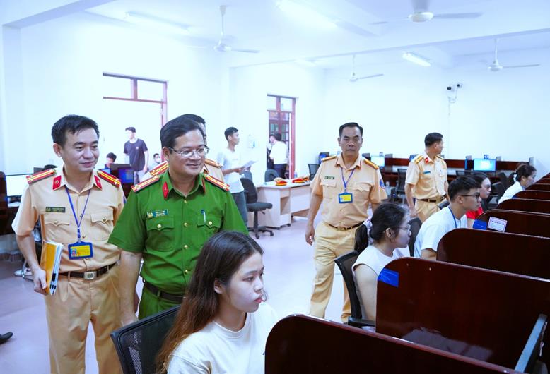 Đại tá Trần Anh Sơn, Phó Giám đốc Công an tỉnh kiểm tra công tác sát hạch giấy phép lái xe