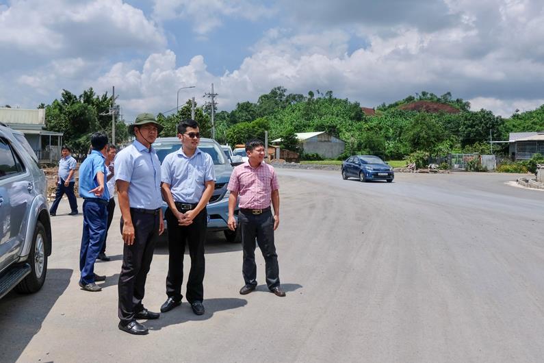 Đại diện Ban An toàn giao thông tỉnh kiểm tra thực tế tình hình giao thông tại nút giao đường cao tốc Phan Thiết - Dầu Giây với quốc lộ 1 và đường tỉnh 765
