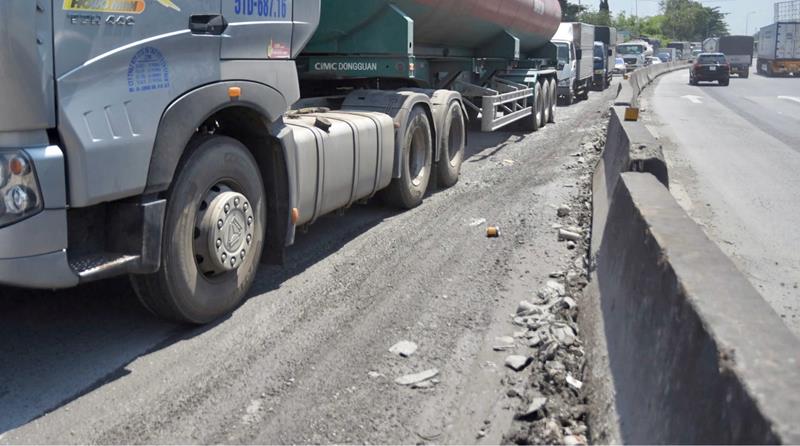 Trước sức nặng của các loại xe tải, xe đầu kéo, mặt đường Quốc lộ 51, đoạn qua phường An Hòa (thành phố Biên Hòa) xuất hiện nhiều "ổ gà"