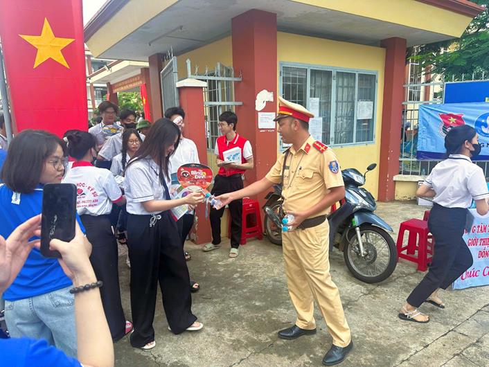 Ngoài công tác tuần tra, kiểm soát, bảo đảm trật tự an toàn giao thông tại các điểm thi, lực lượng Cảnh sát giao thông còn tổ chức phát nước uống miễn phí, hỗ trợ thí sinh quên giấy tờ, hướng dẫn địa điểm thi và sẵn sàng dùng xe chuyên dụng đưa thí sinh đến điểm thi trong trường hợp khẩn cấp. Những hành động nghĩa tình, kịp thời đã để lại ấn tượng đẹp trong lòng người dân, phụ huynh và thí sinh.