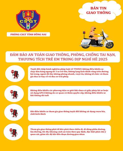 Nhằm bảo đảm an toàn tuyệt đối cho trẻ em trong dịp hè 2025, Phòng Cảnh sát giao thông (CSGT) Công an tỉnh Đồng Nai đã đưa ra những khuyến cáo quan trọng, kêu gọi sự chung tay của toàn xã hội.
