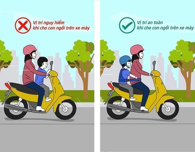 Cụ thể, mỗi phụ huynh cần nghiêm túc thực hiện việc đội mũ bảo hiểm chuẩn cho trẻ khi tham gia giao thông bằng xe máy, xe đạp điện. Đây là biện pháp bảo vệ tính mạng cơ bản nhất.