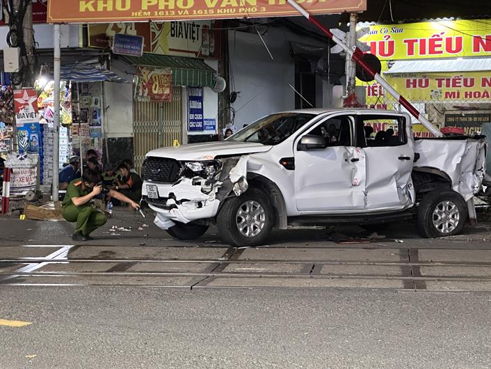 Trên xe bán tải lúc này có 4 người gồm: ông V.V.K., bà M.P.P. (42 tuổi), em N.V.N. (13 tuổi) và bà N.T.U. (55 tuổi). Do cú tông mạnh từ tàu hỏa nên xe bán tải văng vào xe rác ngay trước vị trí cổng chào hẻm 1613 và 1615 (khu phố 3, phường Thống Nhất). Hậu quả, anh L.M.T. (23 tuổi, nhân viên thu gom rác) và em N.V.N. tử vong tại chỗ. 3 người còn lại trên xe bán tải đã được người dân đưa đi cấp cứu.