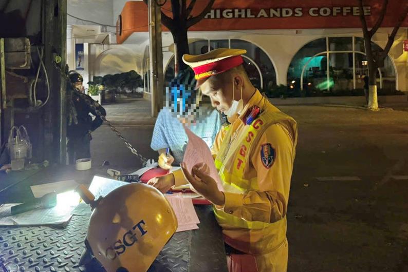 (CTT-Đồng Nai) - Rạng sáng 14-1, Đội Cảnh sát giao thông - trật tự Công an thành phố Biên Hòa đã lập biên bản một số trường hợp điều khiển xe đạp đi vào làn cấm xe thô sơ trên đường Nguyễn Ái Quốc (phường Quang Vinh, thành phố Biên Hòa).