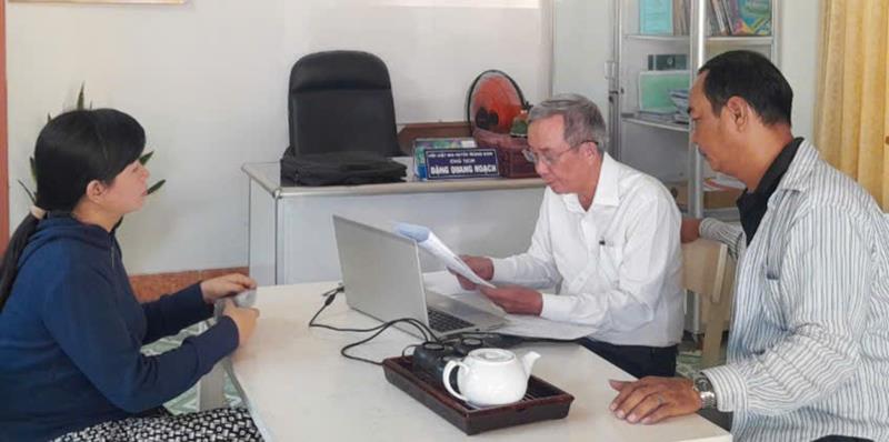 Chủ tịch Hội Luật gia huyện Trảng Bom Đặng Quang Hoạch (giữa) tư vấn pháp luật về dân sự cho người dân