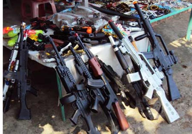 Đồ chơi bạo lực cho trẻ em được bày bán tại các sạp ở chợ vào dịp Tết