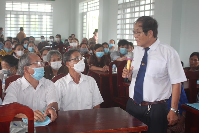 Luật sư Nguyễn Đức (Đoàn Luật sư tỉnh) tuyên truyền pháp luật cho người dân tại xã Thanh Sơn (huyện Định Quán).