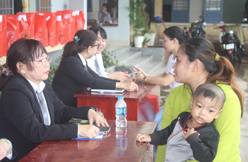 Các luật sư Đoàn Luật sư tỉnh (tay trái) tư vấn cho người dân về chính sách pháp luật về đất tại buổi tuyên truyền ở xã La Ngà (huyện Định Quán)