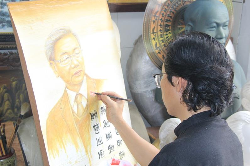 Họa sĩ Nguyễn Quốc Trọng vẽ bức thư họa về chân dung Tổng Bí thư Nguyễn Phú Trọng