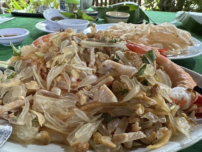 Đối với món gỏi bưởi, món ăn không nên bỏ qua khi đến Đồng Nai đã thu hút rất nhiều khách phương xa. Để được thưởng thức món gỏi bưởi Đồng Nai, du khách có thể đến làng bưởi Tân Triều Năm Huệ tại xã Tân Bình, H.Vĩnh Cửu, giáp ranh với TP.Biên Hòa, hoặc có thể đến các nhà hàng Sen Vàng, nhà hàng khách sạn Đồng Nai hoặc một số nhà hàng lâu năm khác tại TP.Biên Hòa.