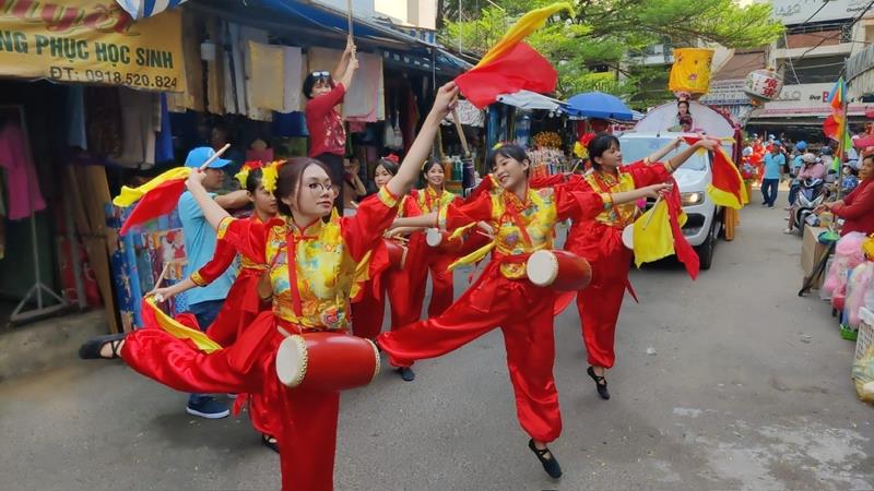 Diễu hành và biểu diễn văn nghệ trên đường phố trong lễ hội chùa Ông, thành phố Biên Hòa được người dân và du khách quan tâm, tham gia