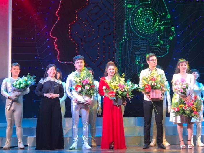 Nghệ sĩ nhân dân Quế Anh cùng các nghệ sĩ, diễn viên trong đêm diễn vở cải lương Niềm khát tại Liên hoan Sân khấu quốc tế thử nghiệm ở Hà Nội