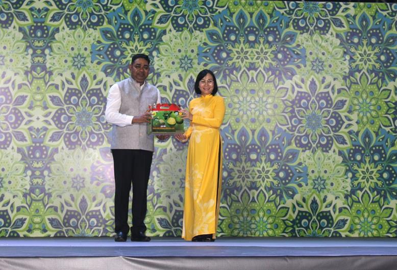 Phó Chủ tịch UBND tỉnh Nguyễn Thị Hoàng tặng quà lưu niệm cho Tổng Lãnh sự quán Ấn Độ tại Thành phố Hồ Chí Minh