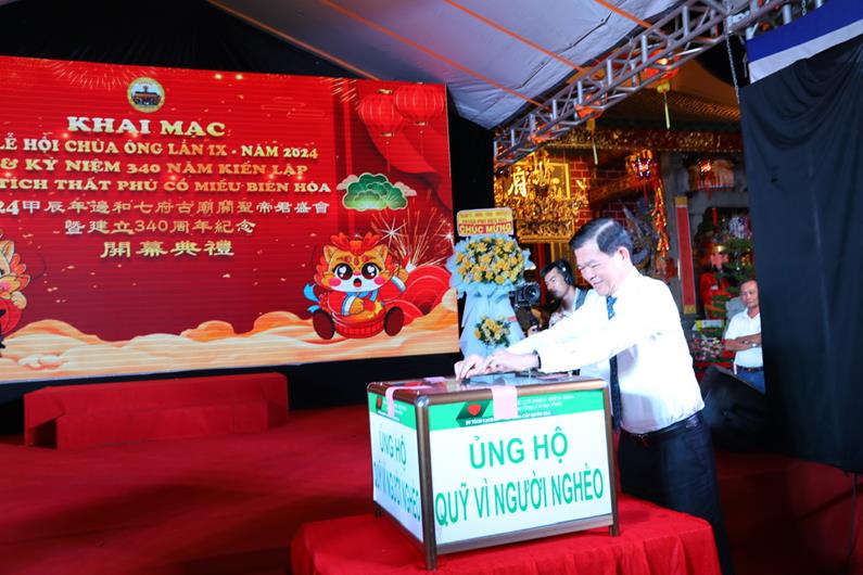 Phát biểu tại lễ khai mạc, Trưởng ban Tổ chức lễ hội Lê Thị Ngọc Loan - Giám đốc Sở VH-TTDL cho biết, Lễ hội chùa Ông được tổ chức thường niên thể hiện sự quan tâm của Đảng bộ, chính quyền tỉnh Đồng Nai trong việc giữ gìn, phát huy các giá trị di sản văn hóa của dân tộc. Nhiều năm qua tỉnh Đồng Nai đã tạo mọi điều kiện cho Ban Trị sự Thất phủ Cổ miếu làm tốt công tác bảo vệ, trùng tu, tôn tạo và phát huy các giá trị di tích; duy trì, bảo tồn lễ hội, tạo thành sản phẩm du lịch văn hóa, tâm linh của tỉnh và khu vực, thu hút khách đến từ trong nước, ngoài nước đến tham dự, chiêm bái.